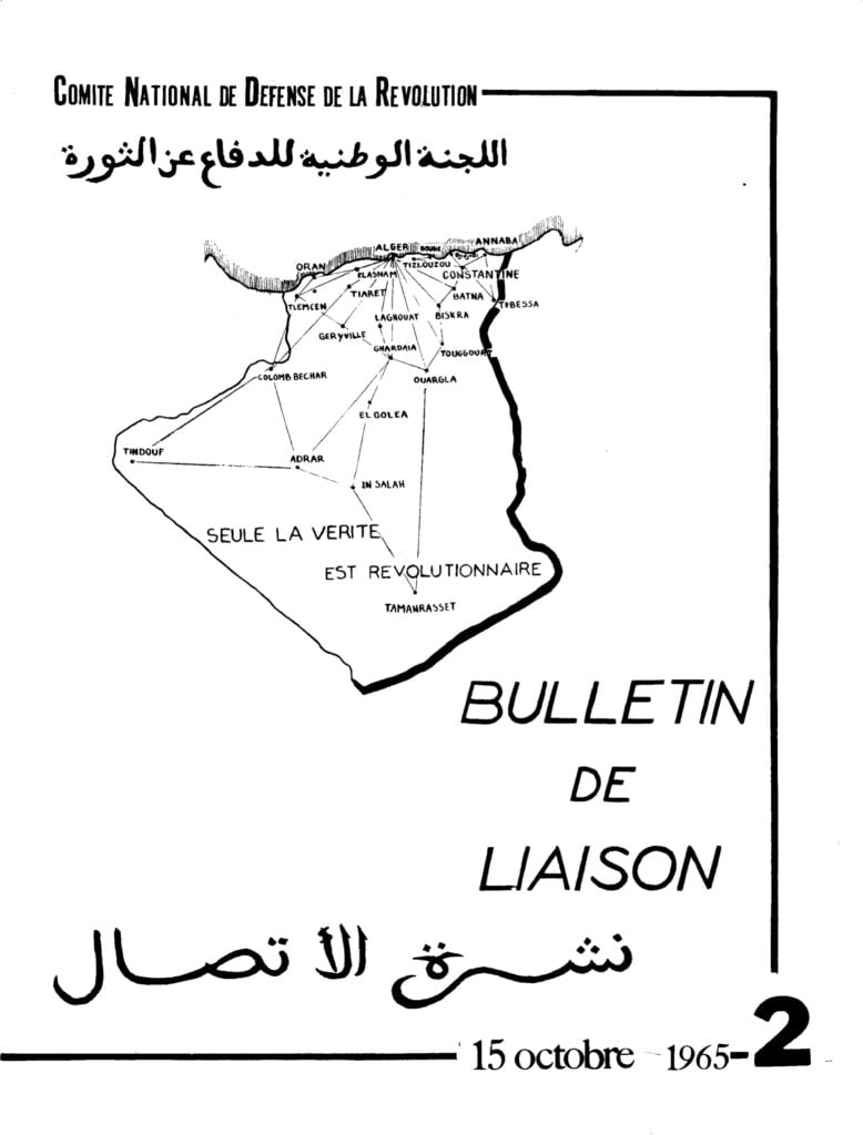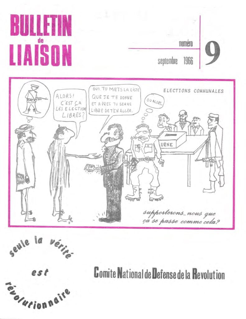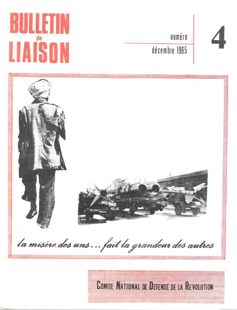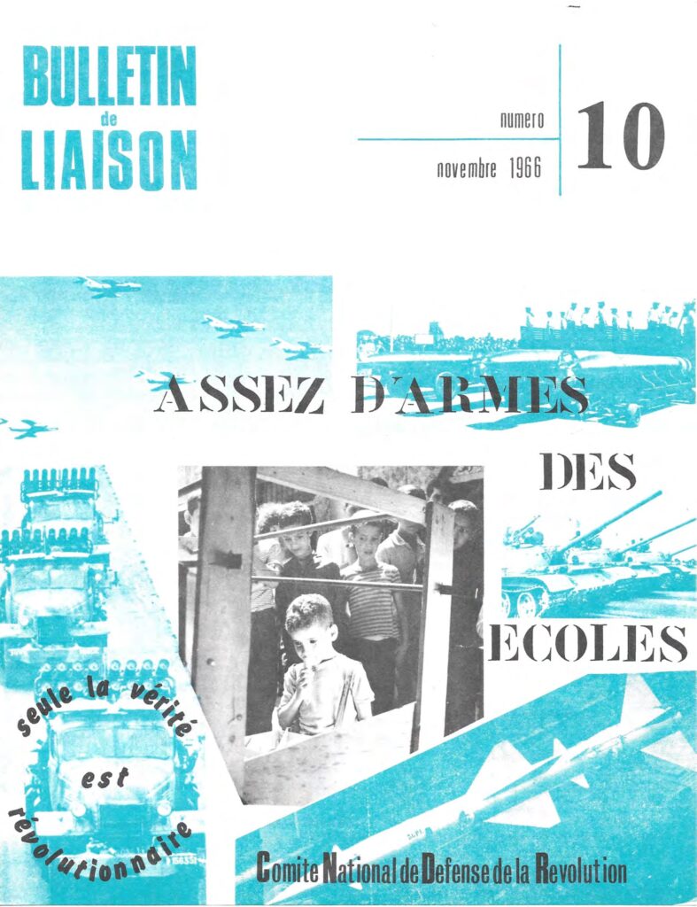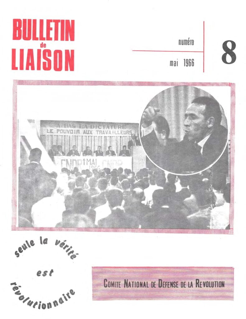 Bulletin de liaisondu Comité National de Défense de la RévolutionBulletin de liaison du CNDR n°1 – 15 septembre 1965Bulletin de liaison du CNDR n°2 – 15 octobre 1965Bulletin de liaison du CNDR n°spécial – 1er novembre 1965Bulletin de liaison du CNDR n°4 – décembre 1965Bulletin de liaison du CNDR n°5 – janvier 1966Bulletin de liaison du CNDR n°6 – février 1966Bulletin de liaison du CNDR n°7 – avril 1966Bulletin de liaison du CNDR n°8 – mai 1966Bulletin de liaison du CNDR n°9 – septembre 1966Bulletin de liaison du CNDR n°10 – novembre 1966Bulletin de liaison du CNDR n°11 – février 1967Bulletin de liaison du CNDR n°12 – 1er mai 1967Bulletin de liaison du CNDR n°13 – juillet, août 1967