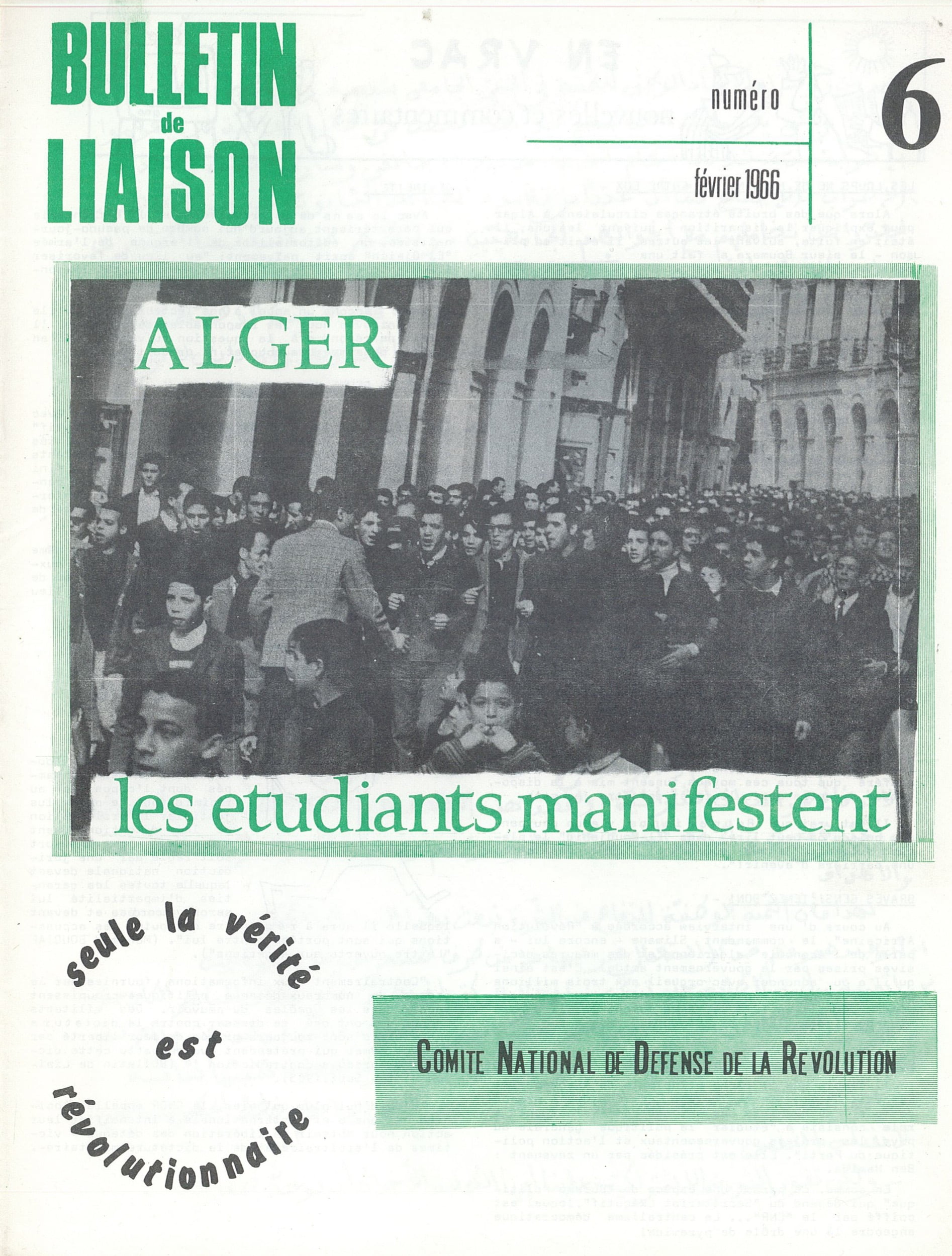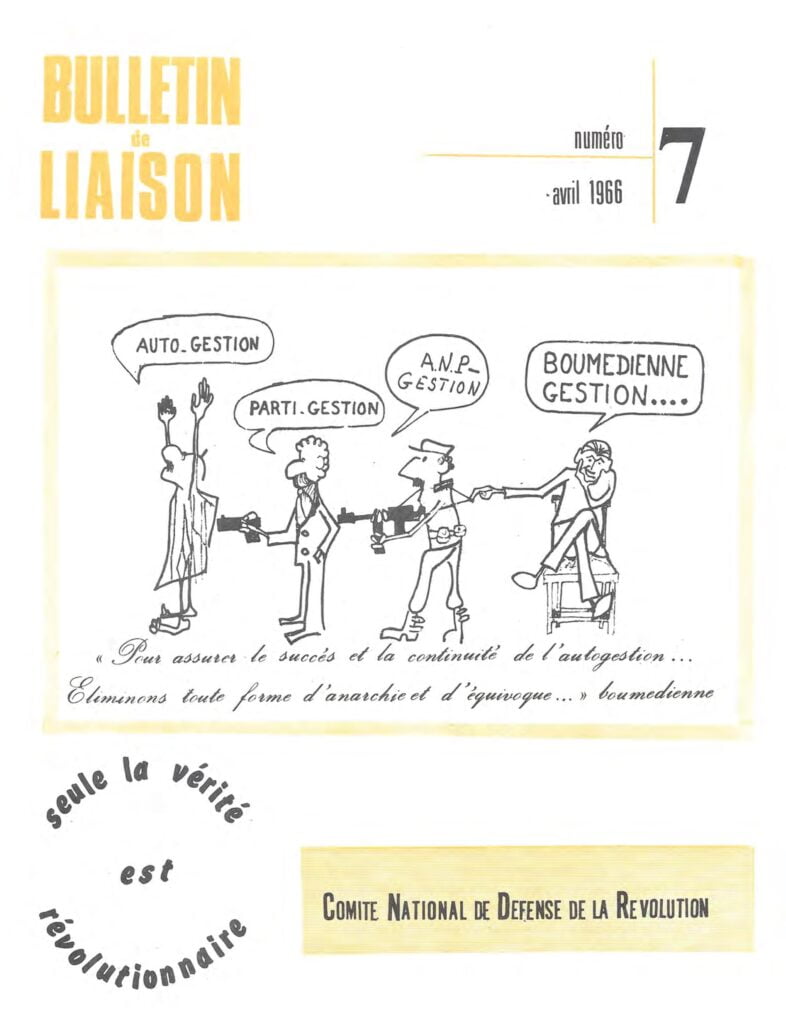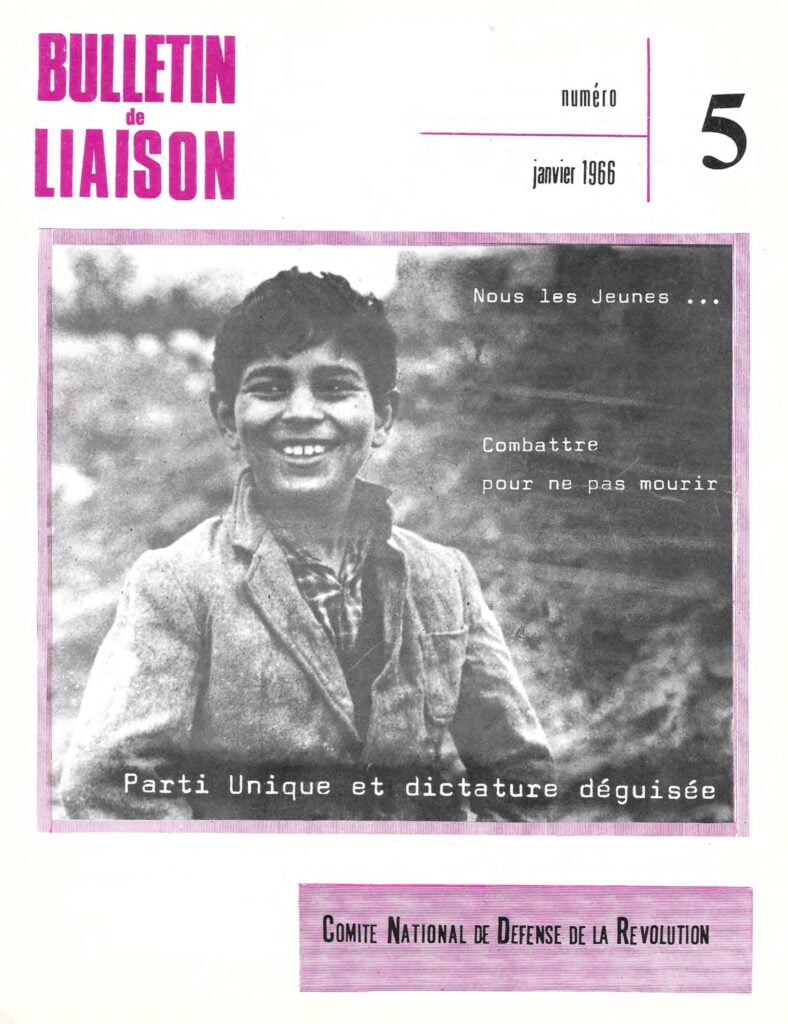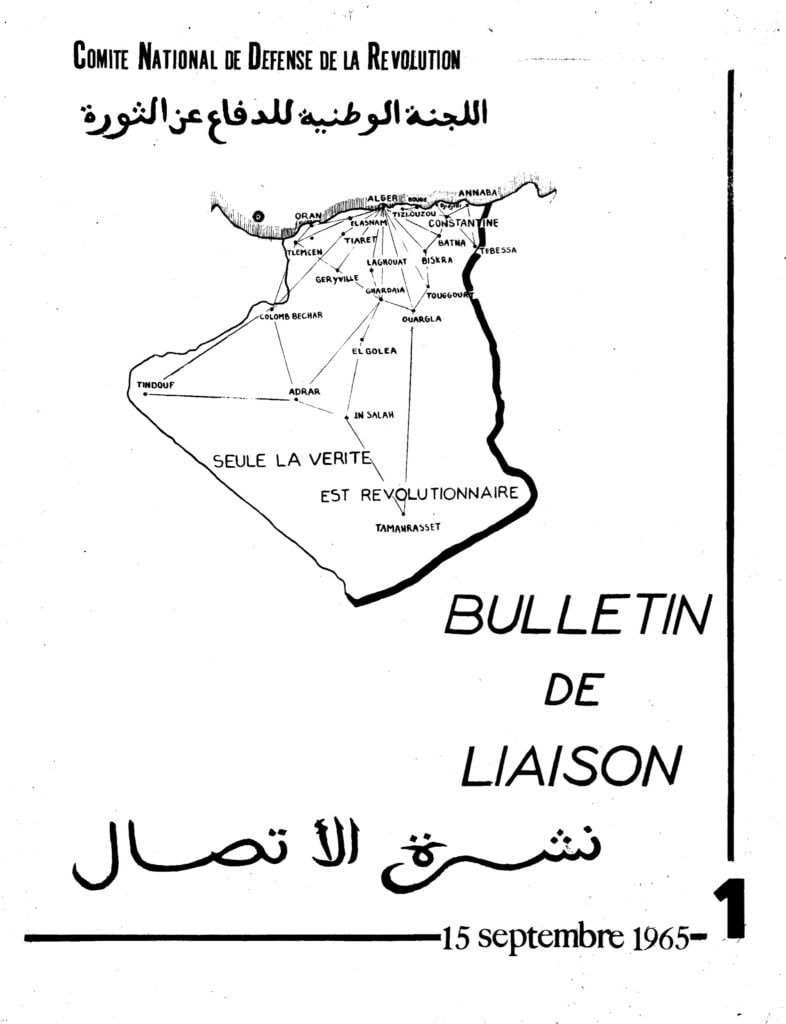 Bulletin de liaisondu Comité National de Défense de la RévolutionBulletin de liaison du CNDR n°1 – 15 septembre 1965Bulletin de liaison du CNDR n°2 – 15 octobre 1965Bulletin de liaison du CNDR n°spécial – 1er novembre 1965Bulletin de liaison du CNDR n°4 – décembre 1965Bulletin de liaison du CNDR n°5 – janvier 1966Bulletin de liaison du CNDR n°6 – février 1966Bulletin de liaison du CNDR n°7 – avril 1966Bulletin de liaison du CNDR n°8 – mai 1966Bulletin de liaison du CNDR n°9 – septembre 1966Bulletin de liaison du CNDR n°10 – novembre 1966Bulletin de liaison du CNDR n°11 – février 1967Bulletin de liaison du CNDR n°12 – 1er mai 1967Bulletin de liaison du CNDR n°13 – juillet, août 1967