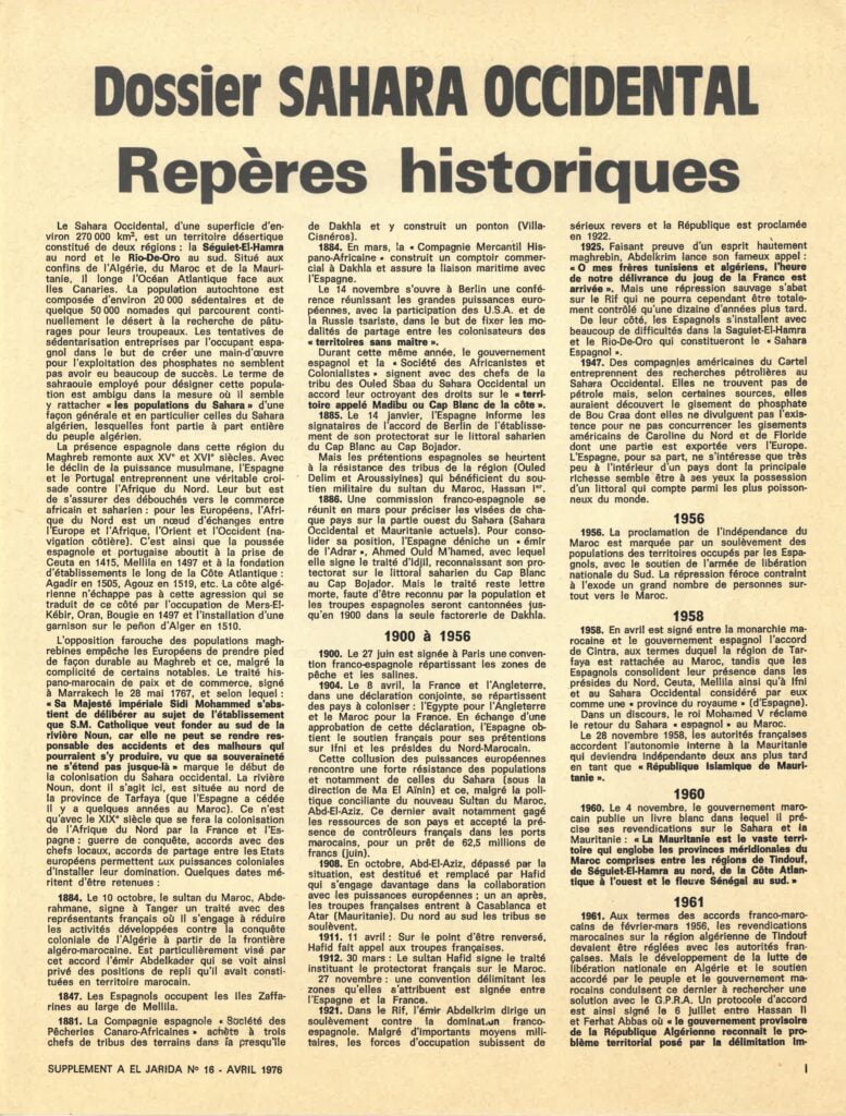 Supplément : Dossier du Sahara occidental