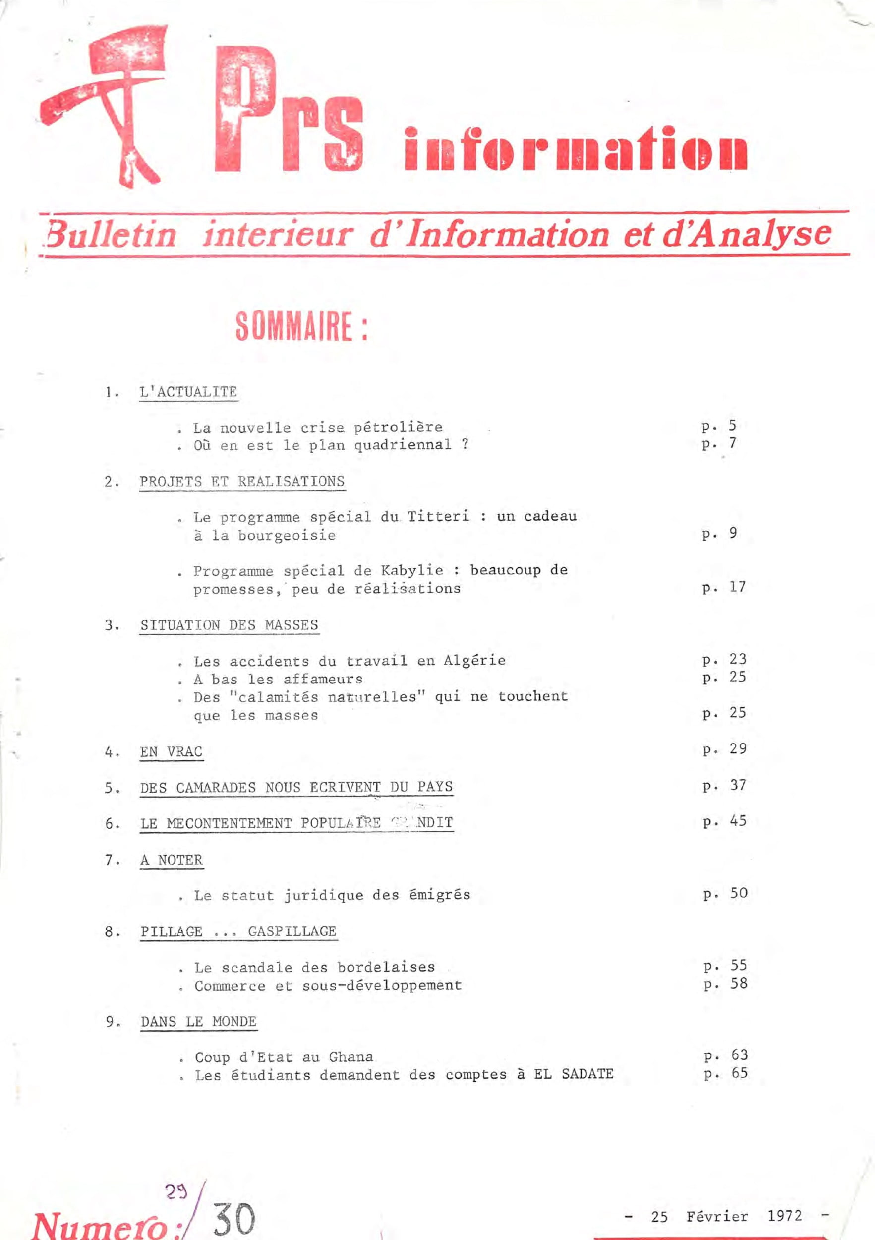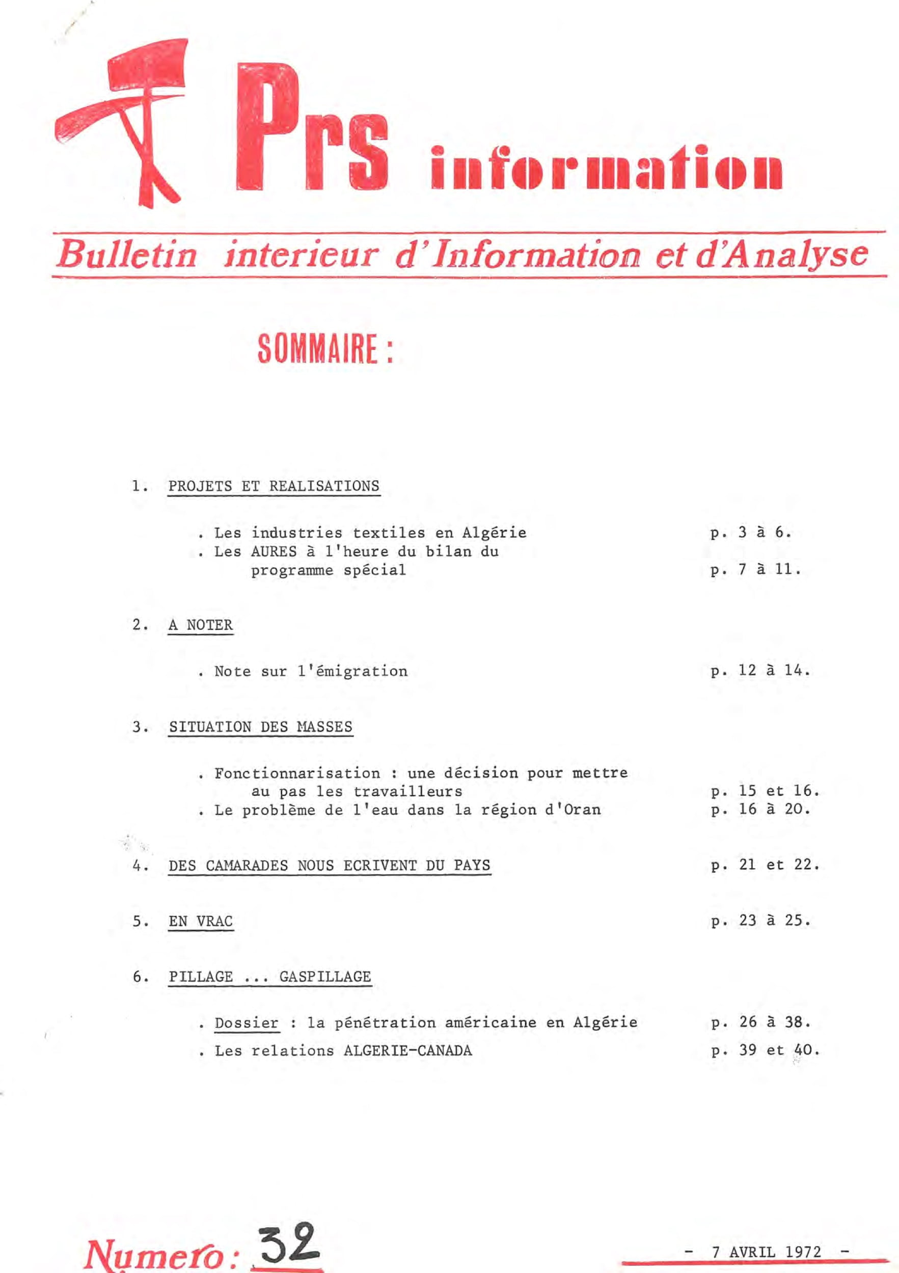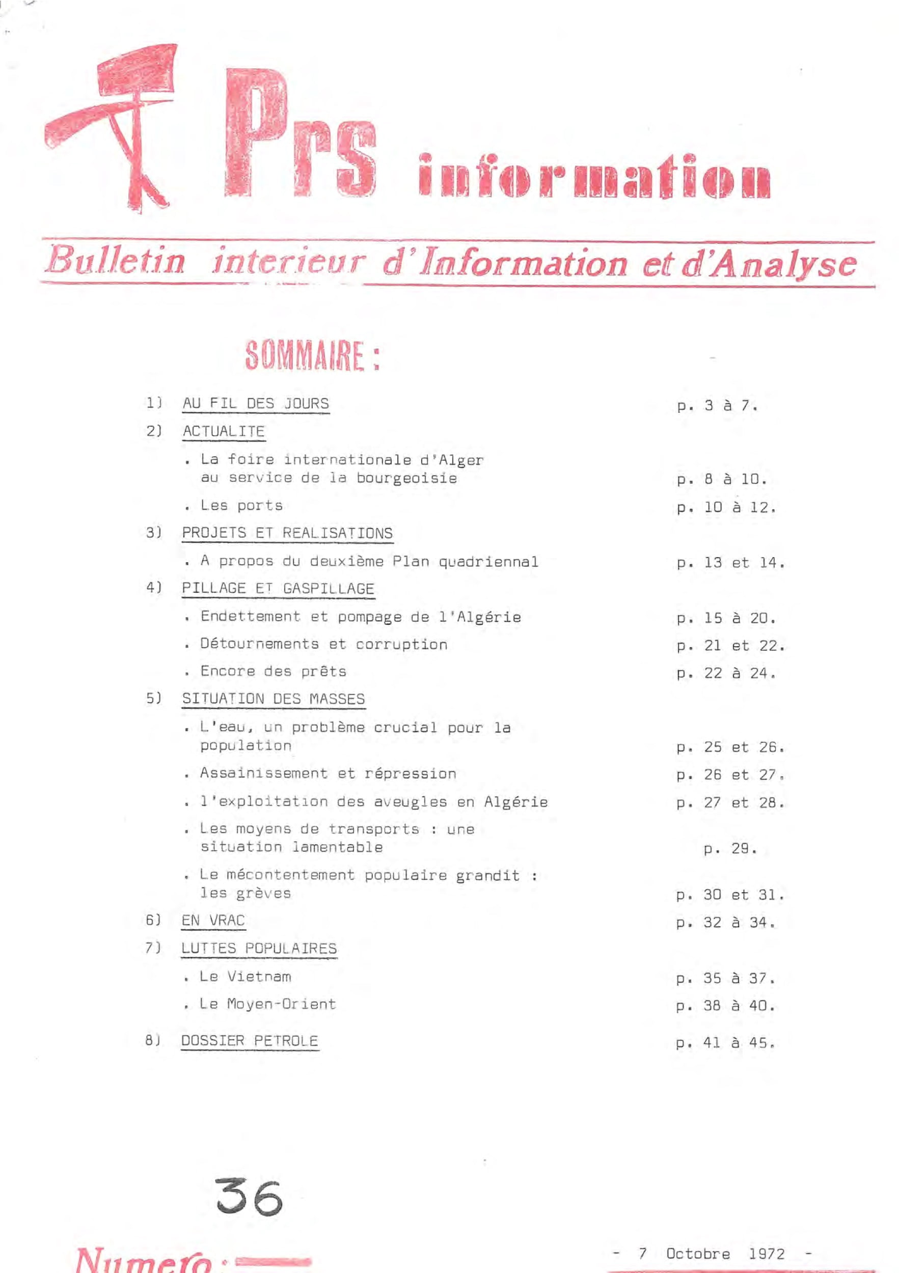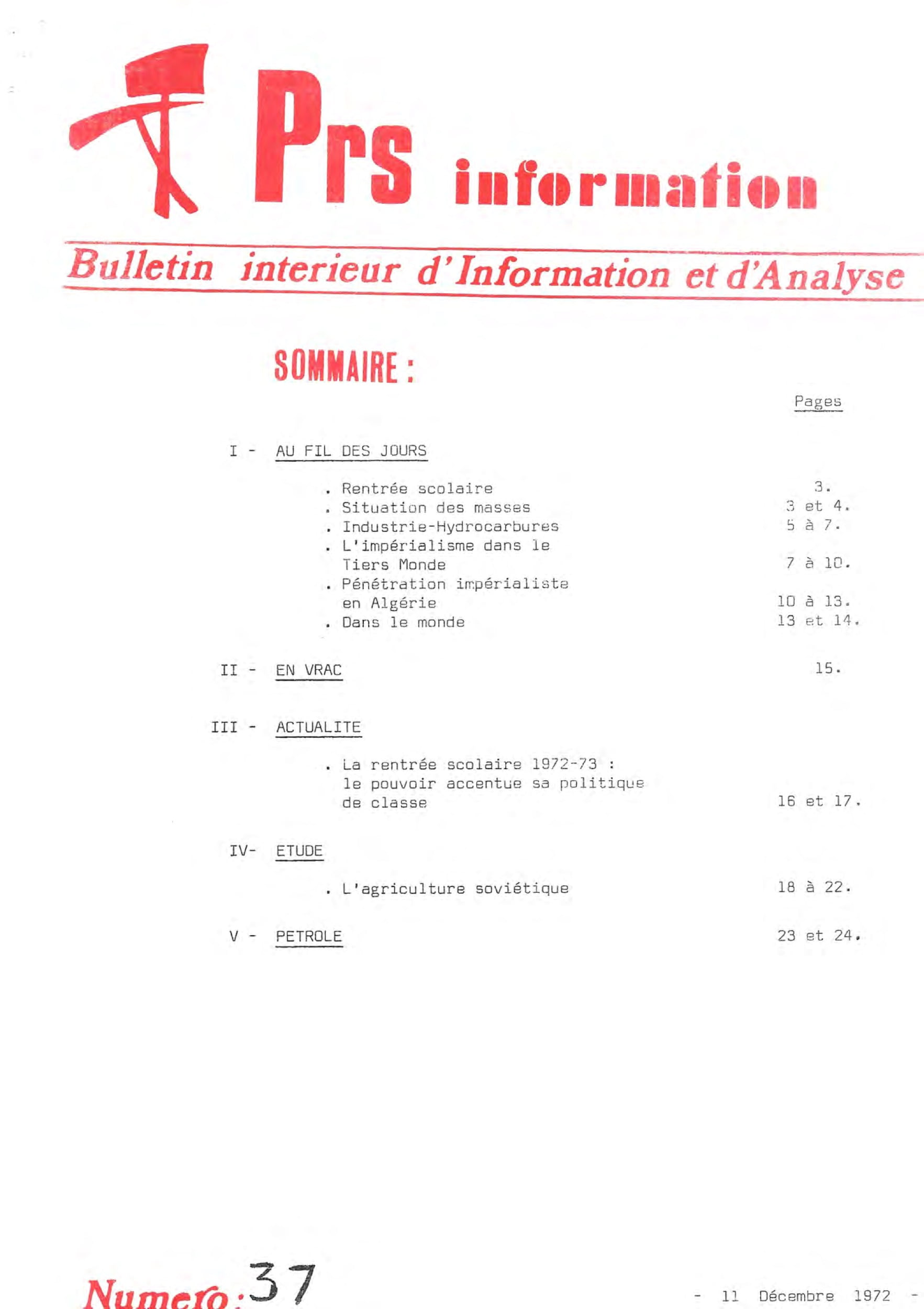 PRS information – série n°1 du 29 au 46PRS information – 25 février 1972PRS information – 17 mars 1972PRS information – 7 avril 1972PRS information – 8 mai 1972PRS information – 5 juin 1972PRS information — 3 juillet 1972PRS information – 7 octobre 1972PRS information – 11 décembre 1972PRS information – 20 janvier 1973PRS information – 15 février 1973PRS information – 15 mars 1973PRS information – 15 mai 1973PRS information – 13 octobre 1973PRS information – 28 octobre 1973