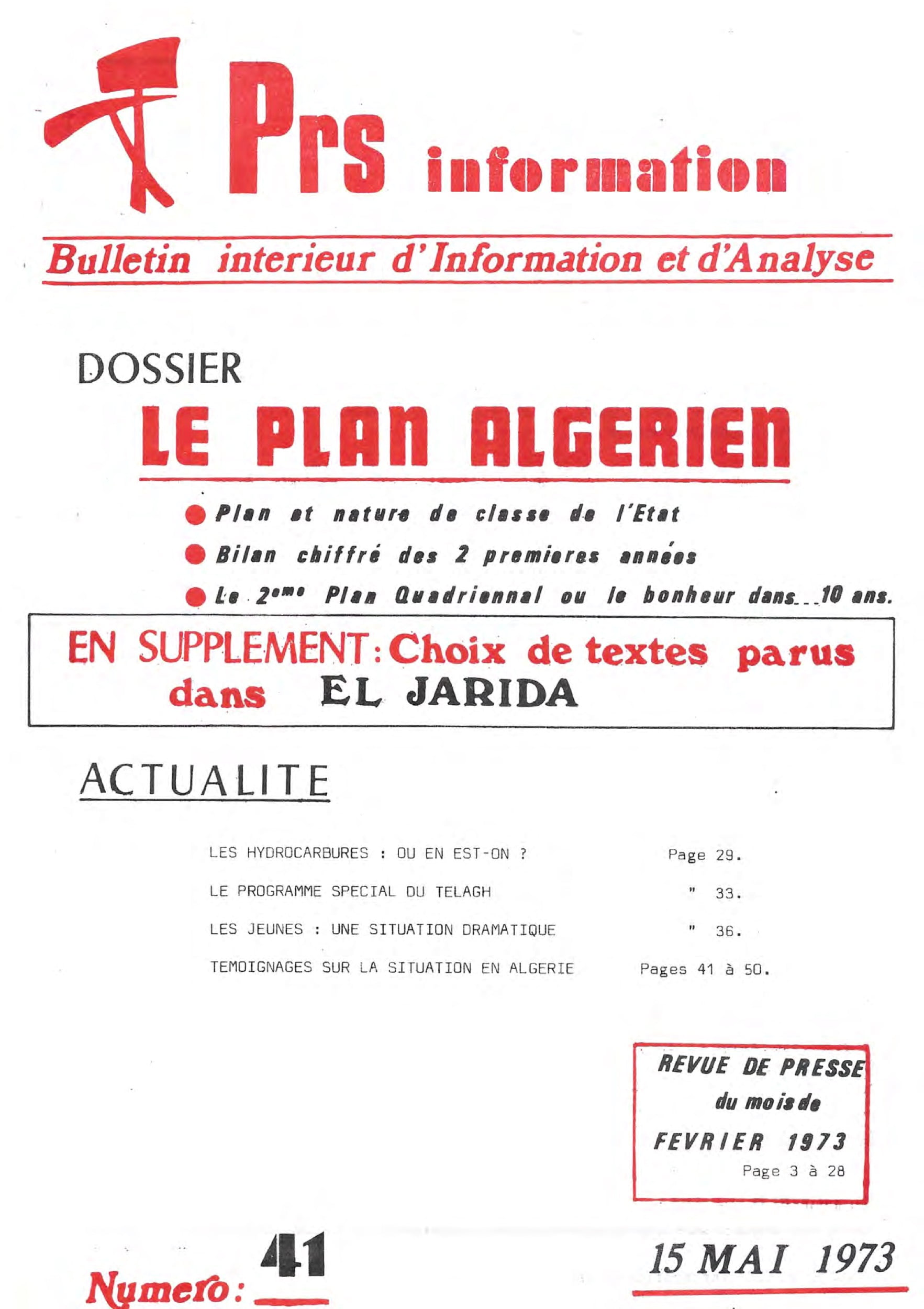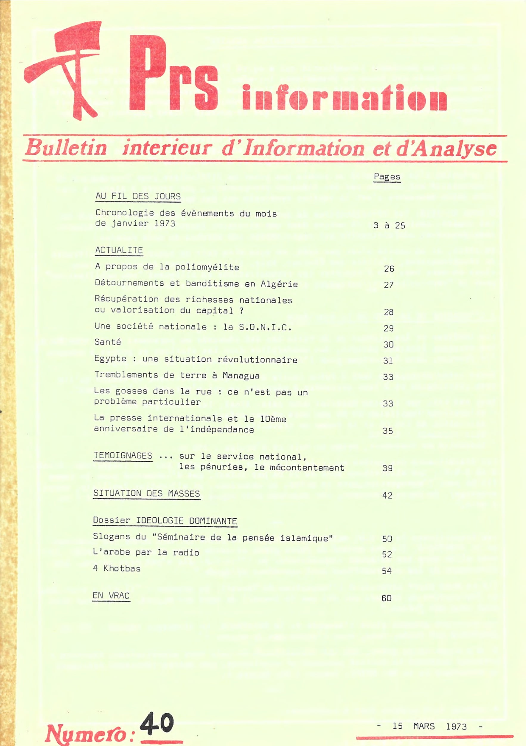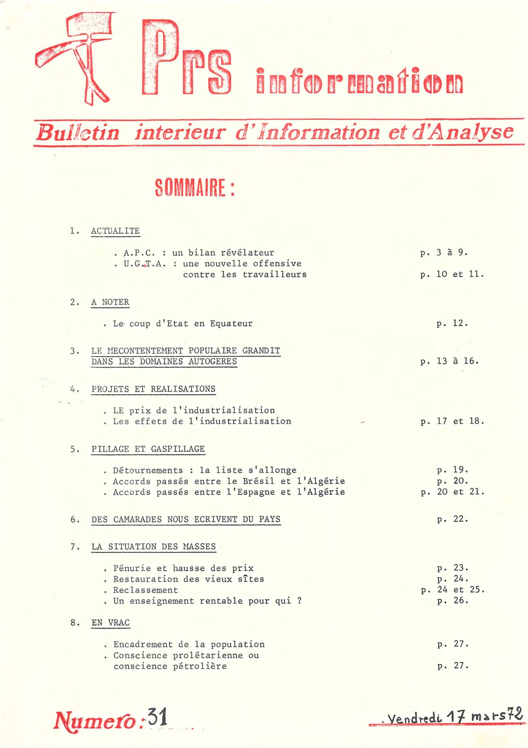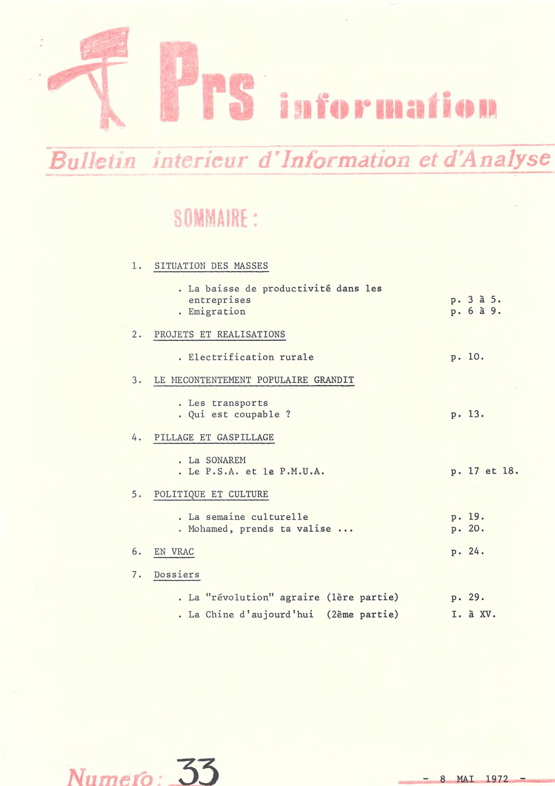 PRS information – série n°1 du 29 au 46PRS information – 25 février 1972PRS information – 17 mars 1972PRS information – 7 avril 1972PRS information – 8 mai 1972PRS information – 5 juin 1972PRS information — 3 juillet 1972PRS information – 7 octobre 1972PRS information – 11 décembre 1972PRS information – 20 janvier 1973PRS information – 15 février 1973PRS information – 15 mars 1973PRS information – 15 mai 1973PRS information – 13 octobre 1973PRS information – 28 octobre 1973